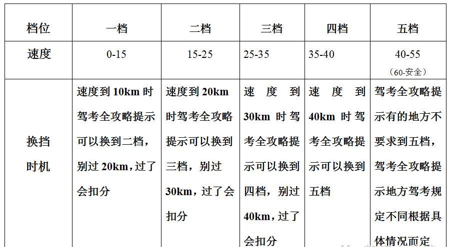 小编在这里就给大家总结一下,具体的换挡速度与档位的对应关系,这里因为驾考的政策不同,可能会与你的所在的考场情况有所不同,不同的话就参考一下,大同小异的。